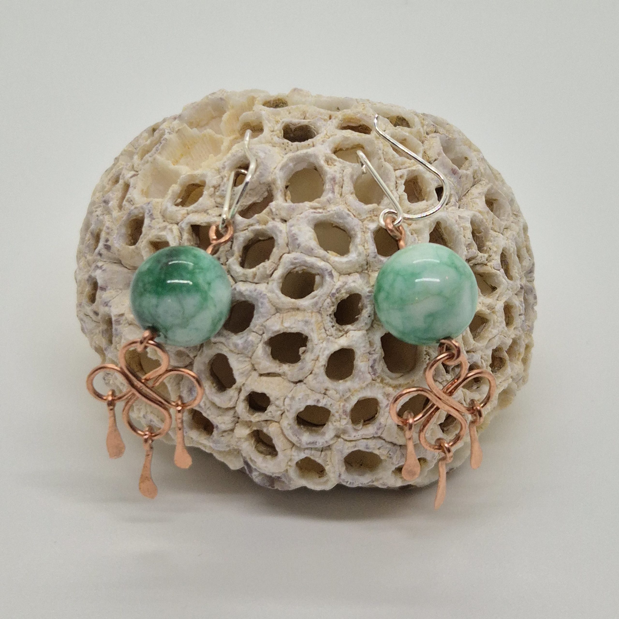 Boucles d’oreilles en cuivre avec céramique, fermoir de sécurité en argent