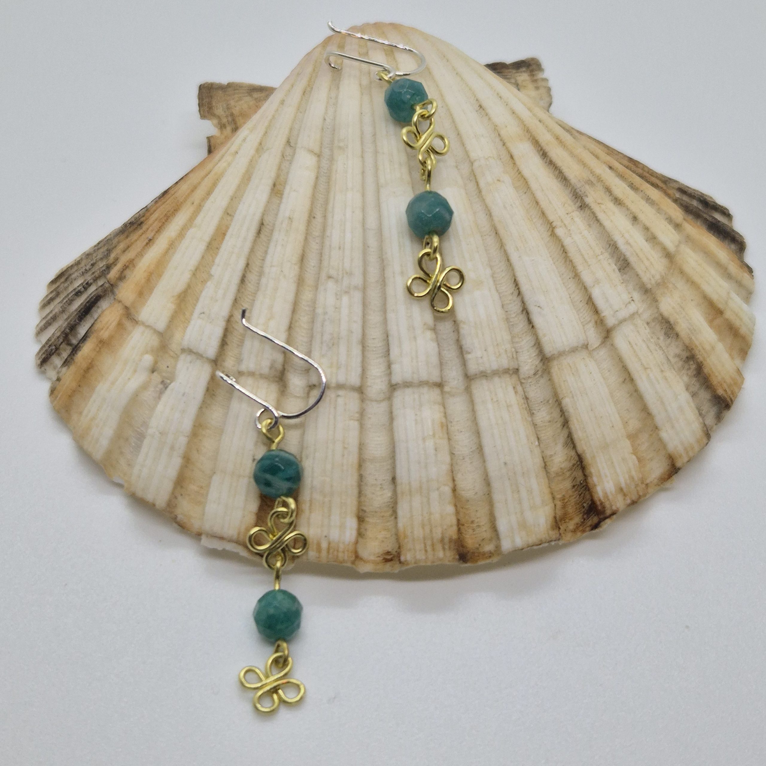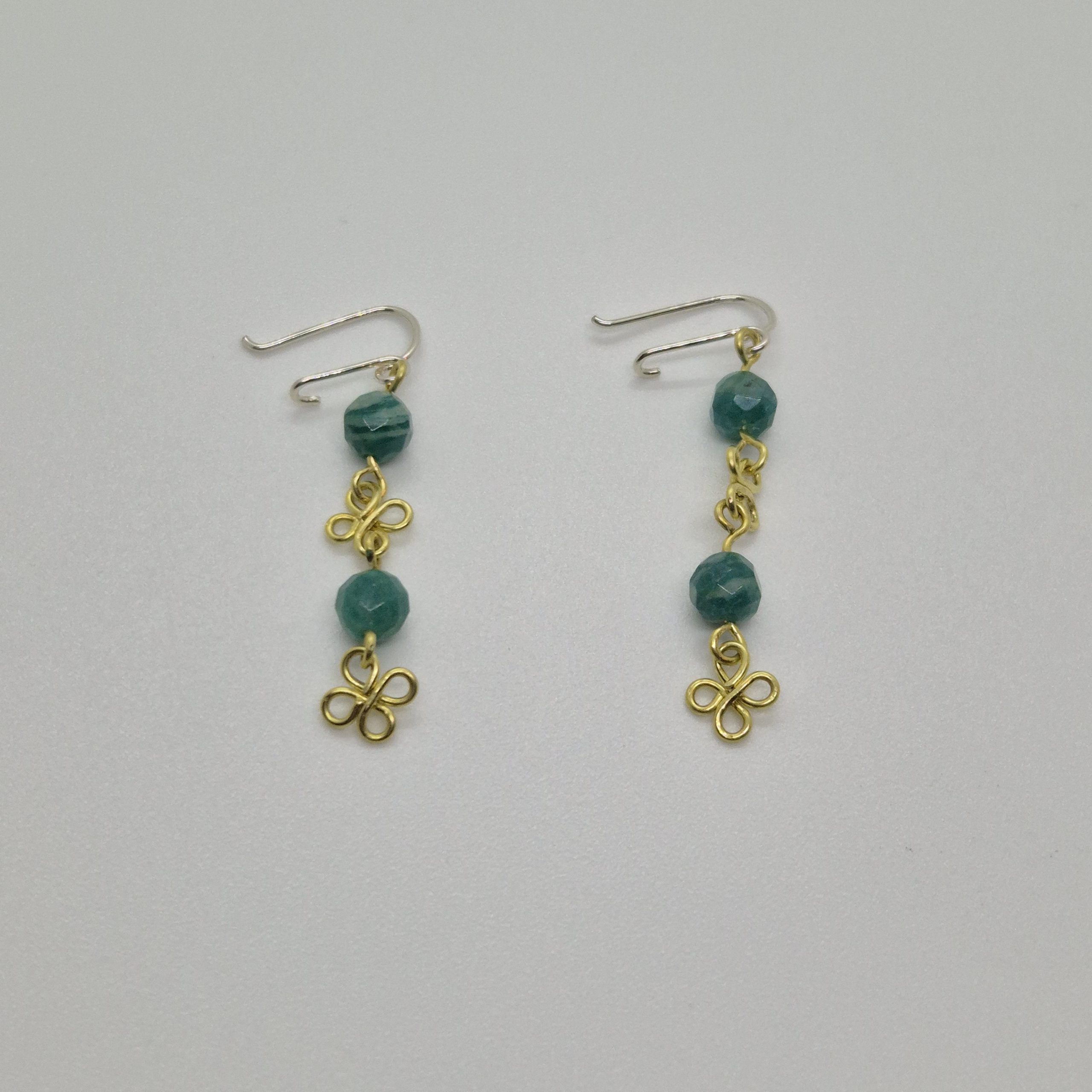 Boucles d’oreilles en laiton avec pierre turquoise, fermoirs de sécurité en argent faits main